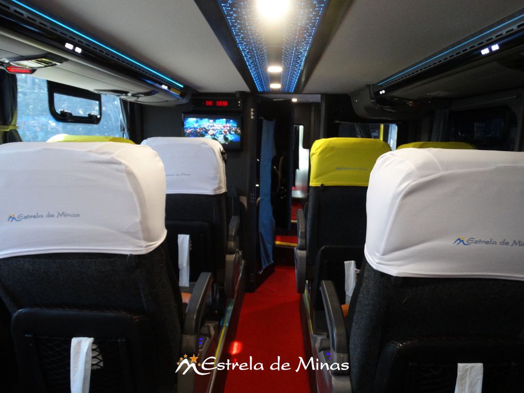 Andar superior: 48 lugares, 05 Monitores de TV's com DVD e MP3 e 2 geladeiras elétricas