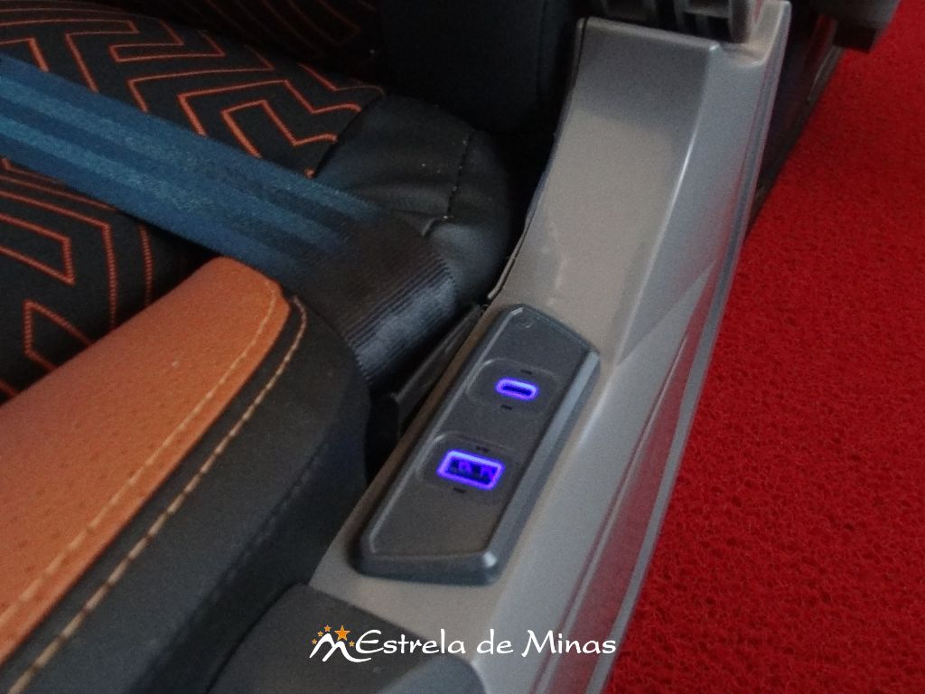 Plug para fone de ouvidos, controle de volume de som (opcionais).