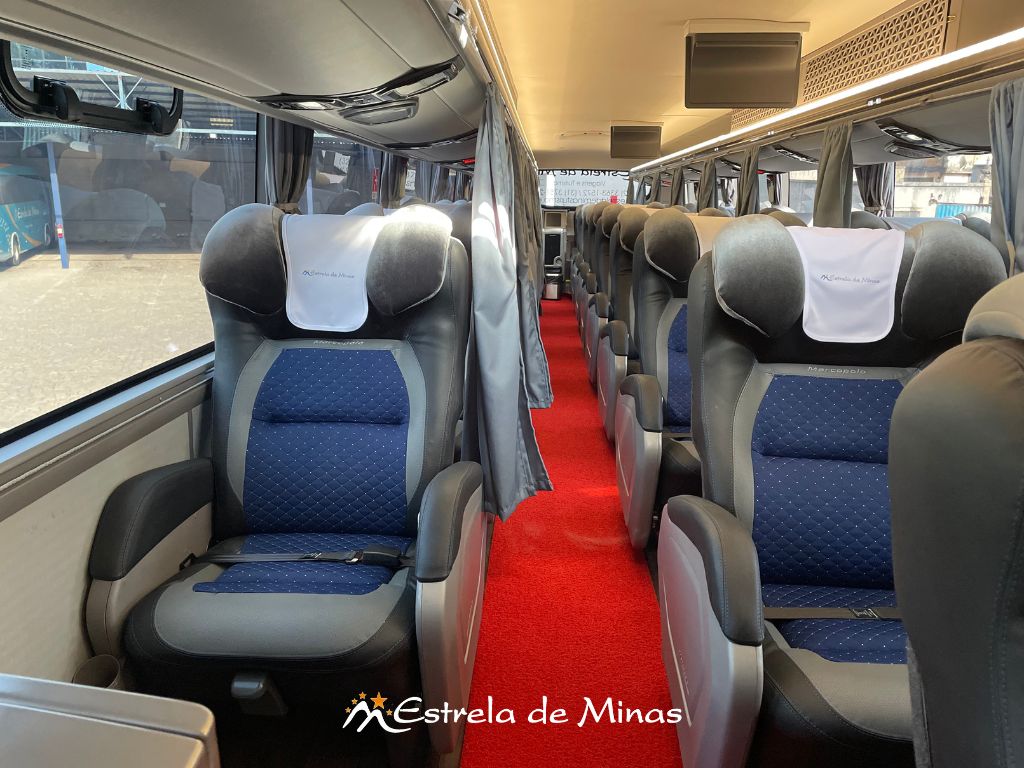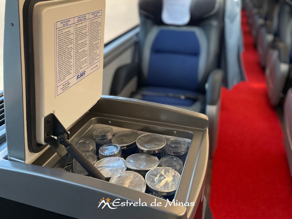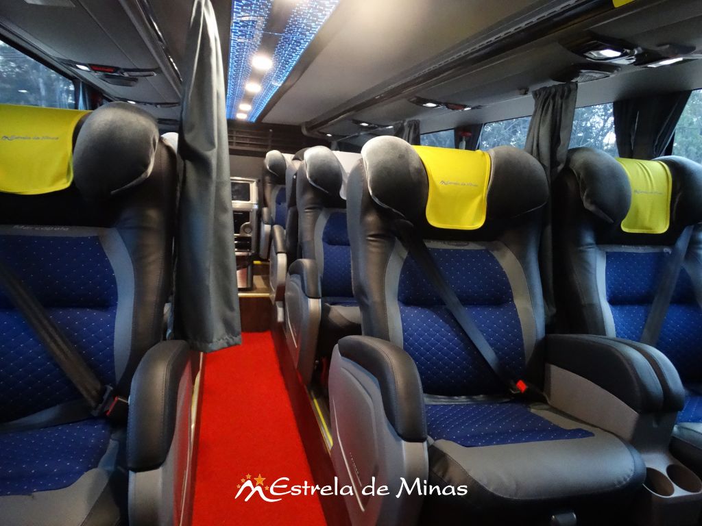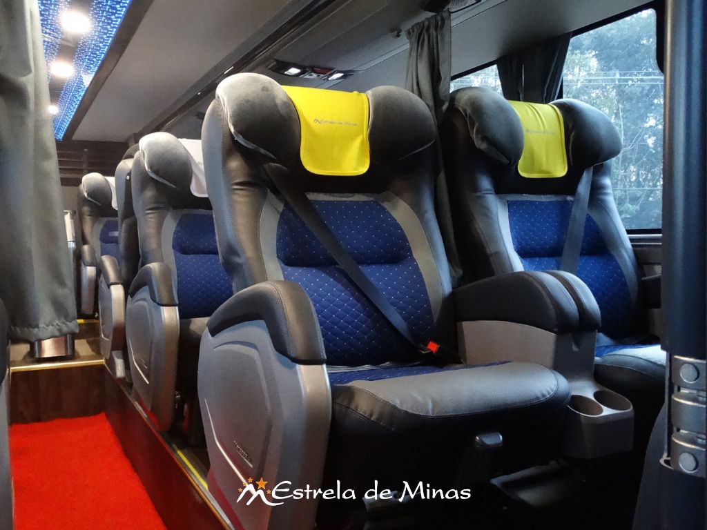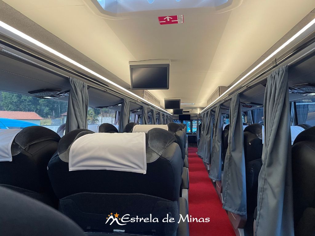 Andar superior: 31 lugares, 04 Monitores de TV's com DVD e MP3 e 2 geladeiras elétricas.
