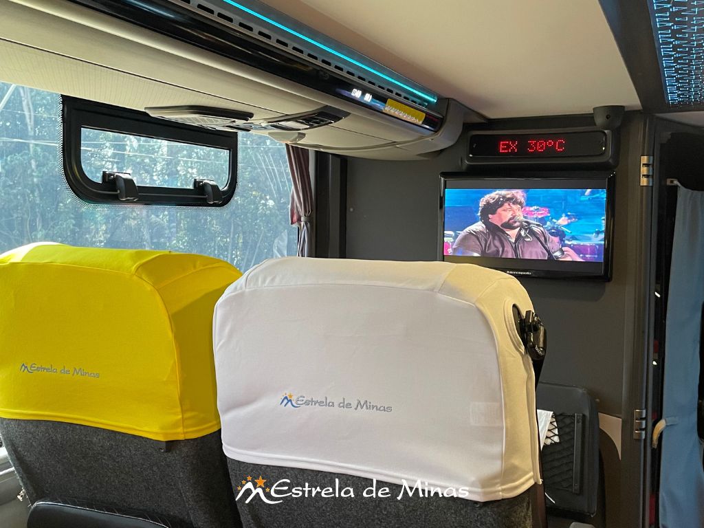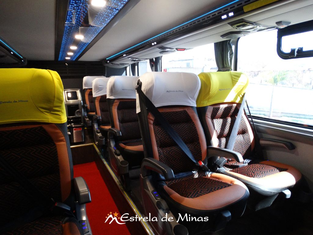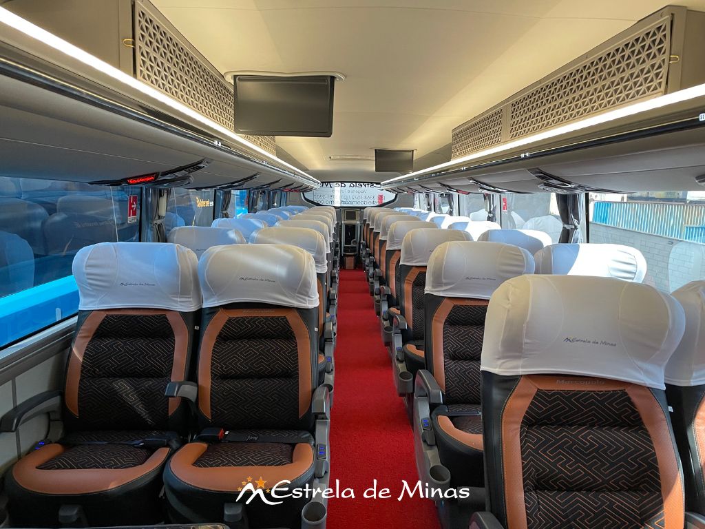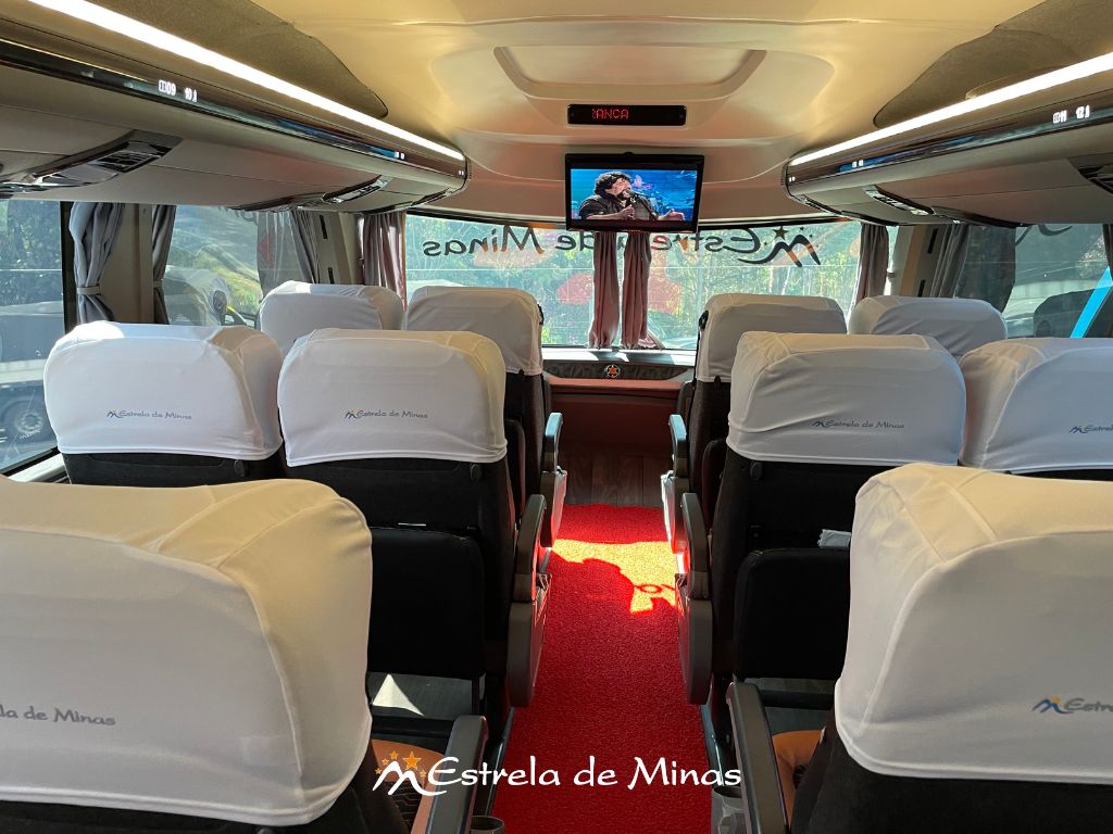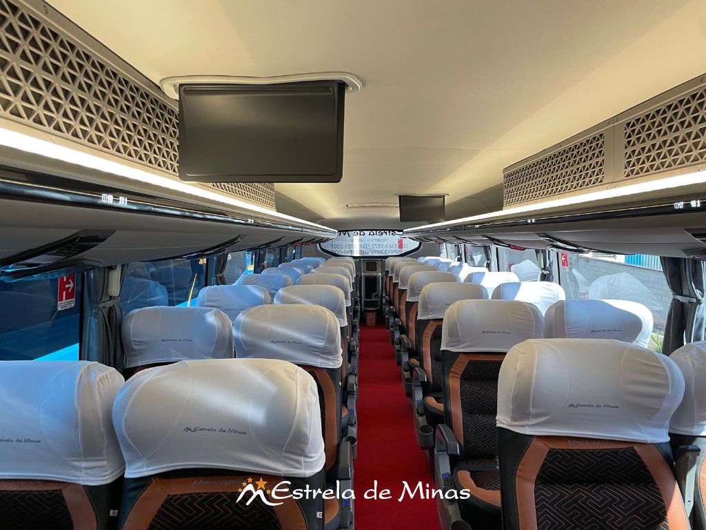 Andar superior: 48 lugares, 05 Monitores de TV's com DVD e MP3 e 2 geladeiras elétricas