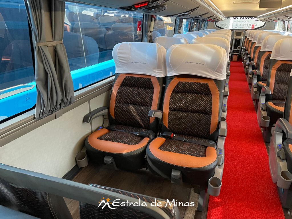 Andar inferior: 16 lugares, Monitor de TV com DVD e MP3, e geladeira elétrica